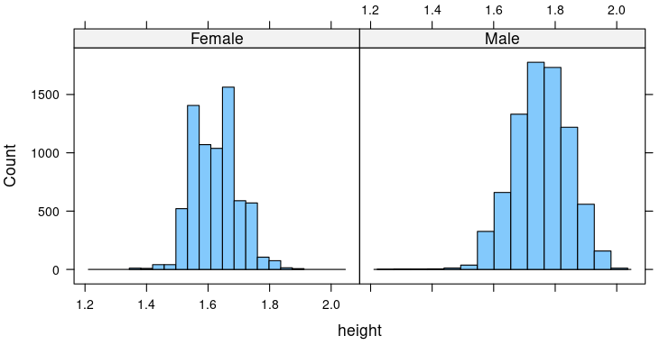 strfunction.– Notice that the faceted histograms or dotPlots do not have labels but rather tick-marks.