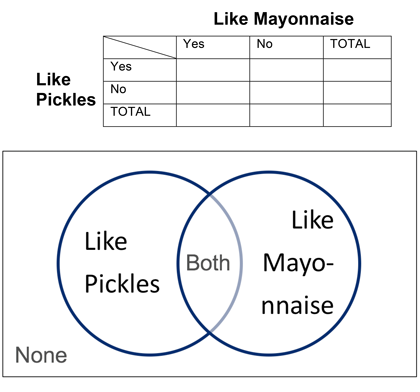 Note: Avoid phrasing the question with “Students that like ONLY pickles OR ONLY mayonnaise.”