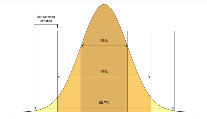 • Approximately 99.7% of the observations in a normal distribution fall within 3 standard deviations of the mean