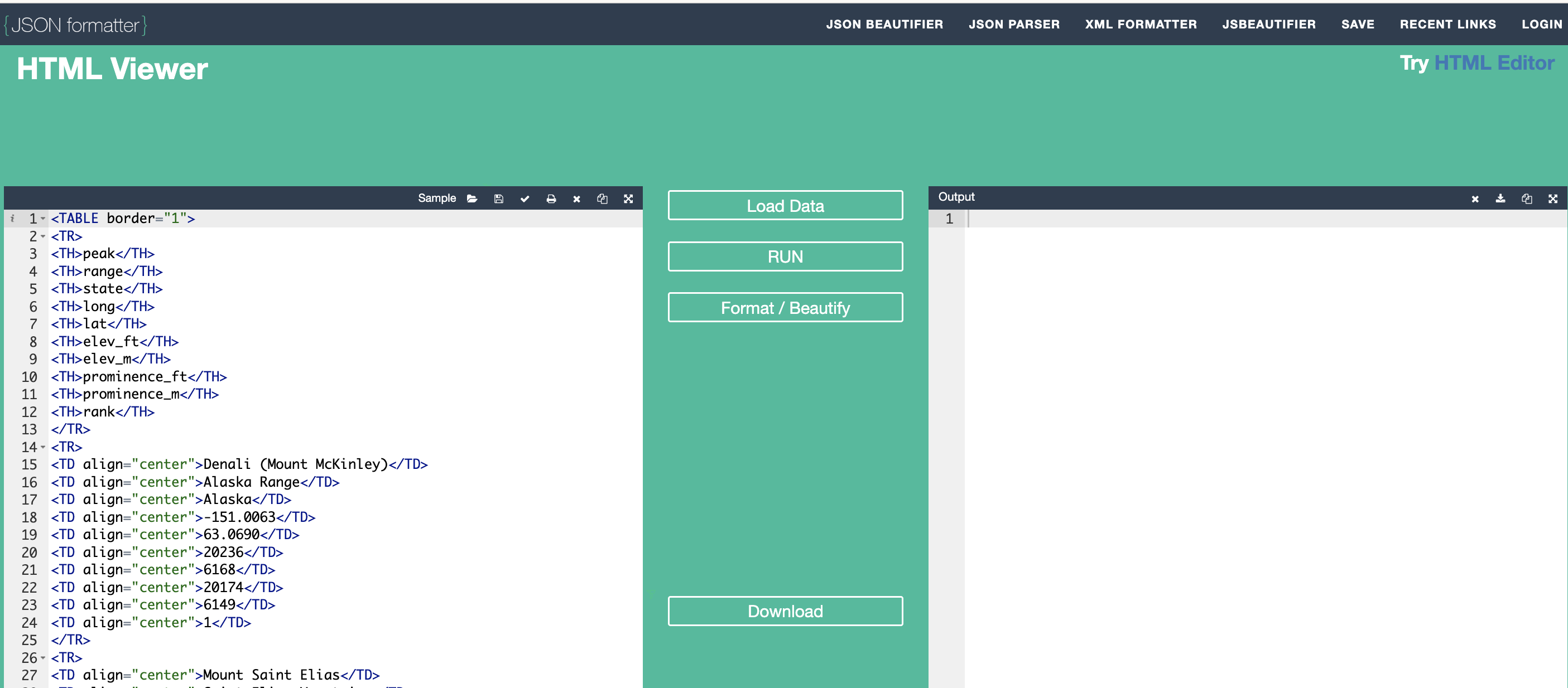 Demonstrate removing a data point from the Input HTML and then click "RUN" again to see the updated Output HTML.