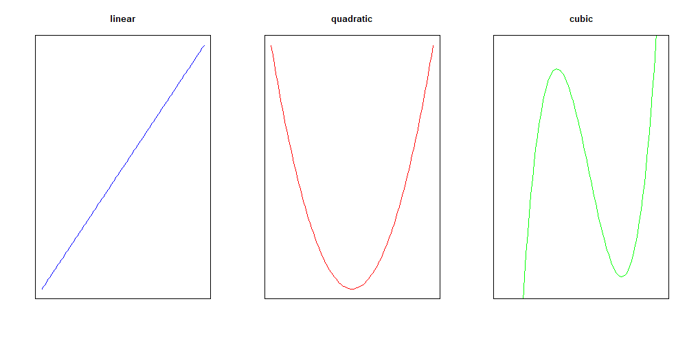 - we might consider fitting a quadratic curve, with equation of the form
