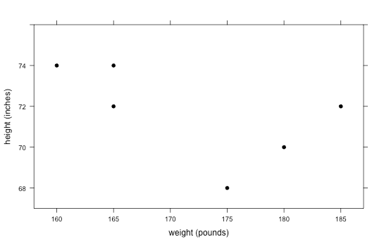 Obs X1 X2 1 160 74 2 165 72 3 165 74 4 175 68 5 180 70 6 185 72  -