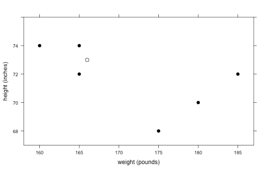 That was an easy one! But what if a player comes in and has the following measurements: weight = 173 pounds, height = 73 inches?